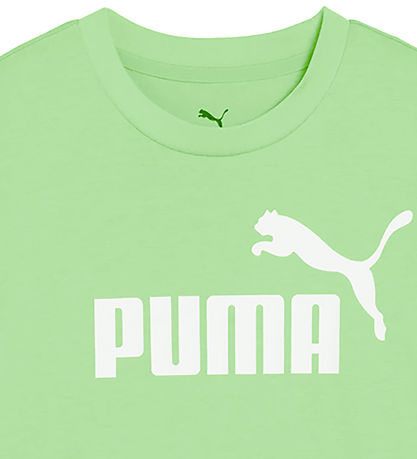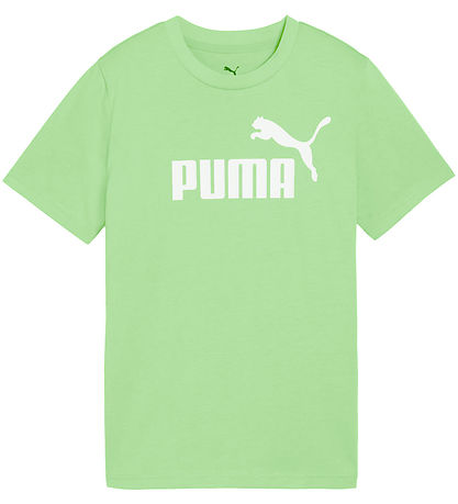 Ansprechender Puma -T-Shirt mit kurzen Ärmeln in frischem Grün mit großem, Weiß Logoaufdruck auf der Vorderseite für einen stylischen Look.