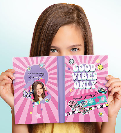 Farbenfroh Style 4 Ever Tagebuch mit Schloss in Nuancen, sowie dem Text"Good vibes only" auf der Vorderseite.