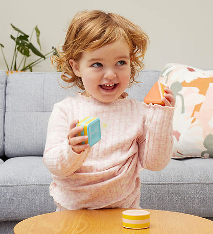 Die Rasselblöcke von Tiger Tribe können gestapelt und gerasselt werden, und jeder einzelne erzeugt seinen eigenen, einzigartigen Klang. Sie sind langlebig und haben die perfekte Größe für kleine Kinderhände. Die Rasselblöcke bestehen aus Biokunststoff und sind Fri von BPA und Phthalaten.