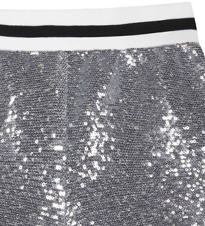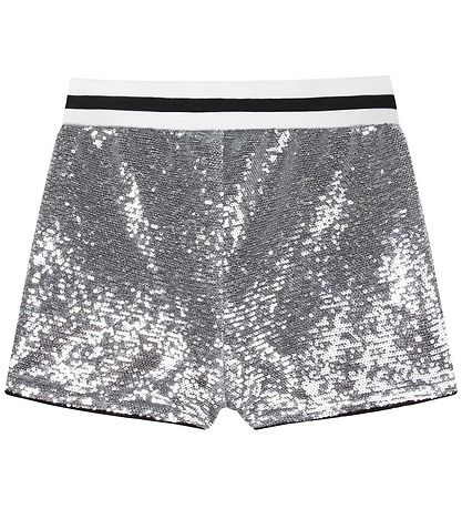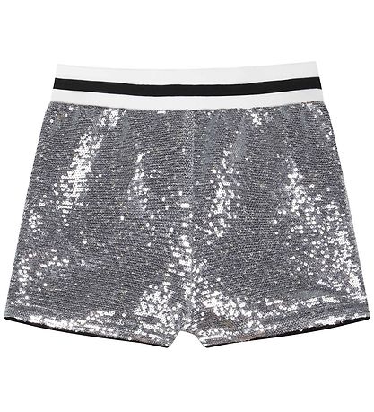 Feine Shorts von Zadig & Voltaire mit marineblauen Pailletten. Im Leben sind sie weiß mit einem schwarzen Streifen und die Hosenbeine haben schwarze Ränder.