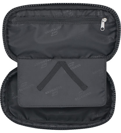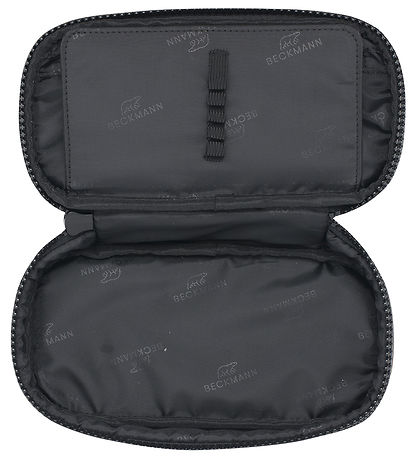 Das Beckmann Federmäppchen ist ein Federmäppchen mit festen Seiten. Es lässt sich mit einem Reißverschluss öffnen und im Deckel befindet sich eine Reißverschlusstasche. Das Federmäppchen besteht aus einem großen Fach und am Reißverschluss hängt an der Unterseite eine feste Platte mit elastischen Bändern für Stifte, Farben usw.