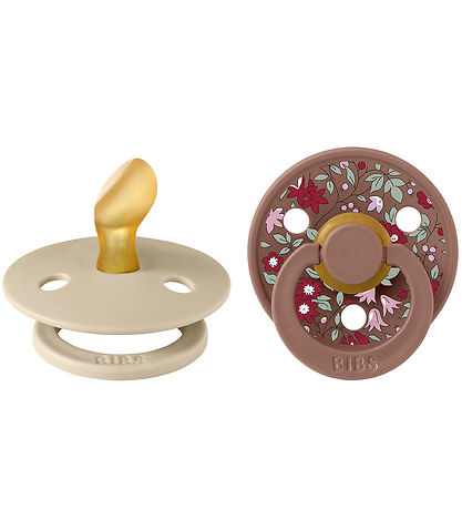 Feine BIBS x Liberty Schnuller im praktischen 2er-Pack in Graubeige und matt mit Blumenprint in Rot, Grün, Weiß und Rosa.