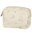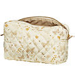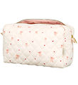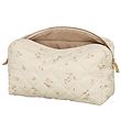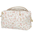 Schön Kulturbeutel von Cam Cam Copenhagen in cremeweiß mit süßem Blumen- und Kaninchendruck in Rosa und Beige und mit gesteppt. Das Innenfutter des Kulturbeutels ist beige.
