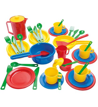 Das Dantoy Küchenset besteht aus 42 Teile und enthält alles von Besteck über Töpfe bis hin zu Zuckereimern.