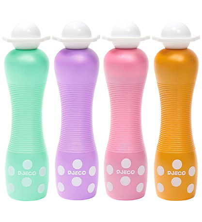 Schöne Djeco Punktmarker in Grün, lila, Pink und Orange. Djeco ist bekannt für seine kreativen Produkte für kinder, und dieses Buntstifte-Set mit große Punktmarkern macht es einfach, schöne, bunte Punkte zu machen. Perfekt für kleine Künstler.