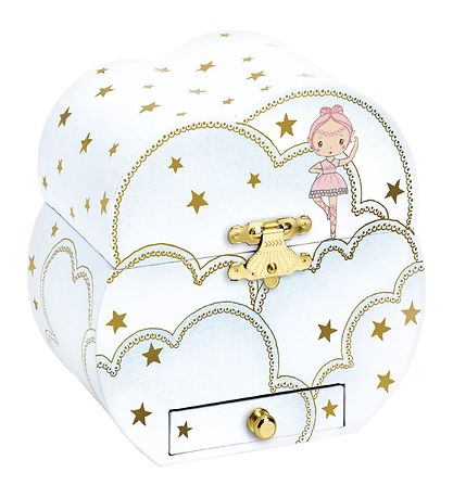 Die Djeco hat die Form einer Wolke. Im Inneren der Schmuckschatulle befindet sich eine Spieldose, die auf der Rückseite hochgezogen wird. Beim Hochziehen und Öffnen des Deckels erscheint eine klein Tänzerin, die sich umdreht, während das Schmuckkästchen Carl Maria von Webers "Einladung zum Dance" spielt. An der Vorderseite befindet sich unten eine klein Schublade.