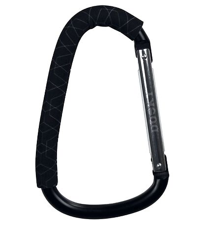 Praktischer Dooky-Karabiner aus schwarzem Schaumstoff und Metall.