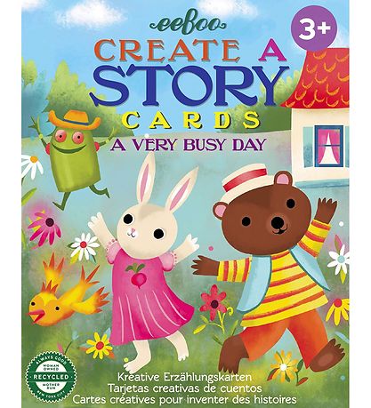 Das Eeboo -Lernspiel hilft dem Kind, Bilder und Worte zu den heutigen Ereignissen zu setzen. Die Sprachkompetenz und das kreative Denken des Kindes werden gestärkt.