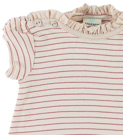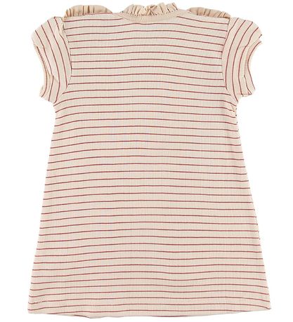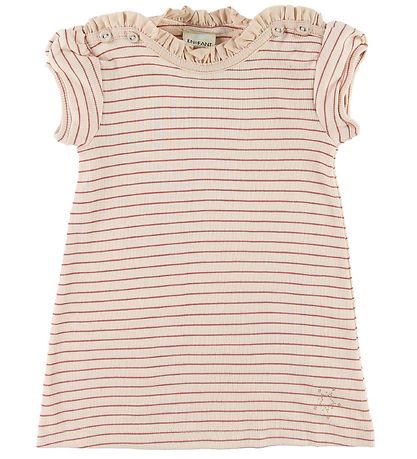 Wunderschönes En Fant Kleid in Pink mit Streifen in Altrosa. Am unteren linken Seite ist ein Print eines Stern.