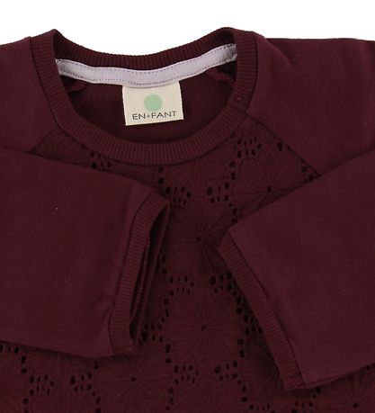 Sweet En Fant Pullover in Burgund mit feiner Spitze vorne.