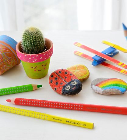 Faber-Castell Buntstifte haben eine ergonomische Dreikantform und die klassischen Knäufe an den Seiten, die für einen guten Halt sorgen. Die Buntstifte sind in schönen Farben erhältlich und mit einem umweltfreundlich Lack auf wasserbasiert versehen, der vor Minenbruch schützt. Das Baum stammt aus nachhaltiger Forstwirtschaft. Die Buntstifte sind wasserlöslich und eignen sich daher auch für Aquarellmalerei.