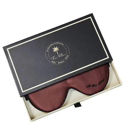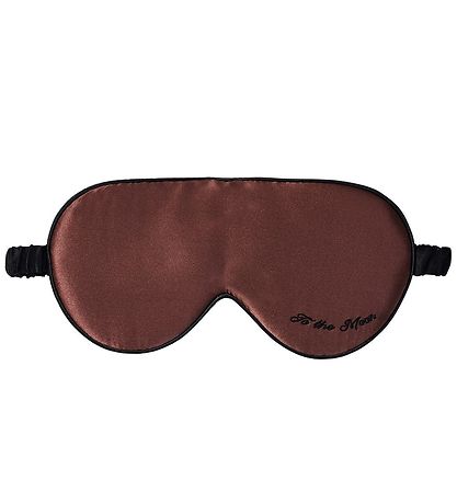 Lieblicher Fan Palm -Schlafmaske in Braun mit einer Strickerei des Textes "To The Moon" auf der linken Seite.