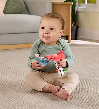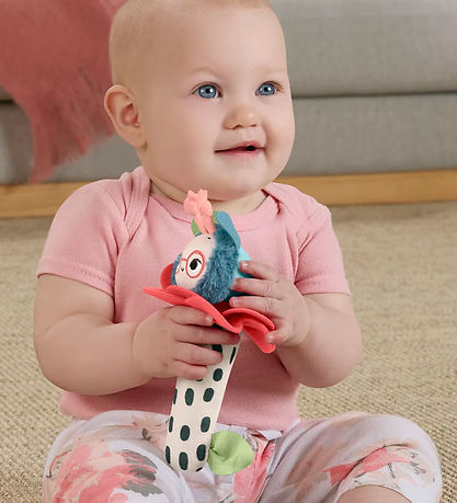 Die klein Figur der Fisher-Price -Rassel kann mittels Klettband an der Top der Blüte befestigt werden. Beim Schütteln der Rassel ertönt ein angenehmes Rascheln, das die Sinne anregt und Unterhaltung für die Kleinen bietet.