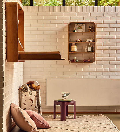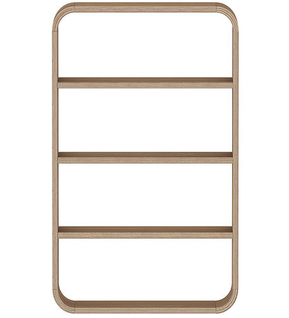 Das Flexa Regal hat abgerundete Ecken und verfügt über fünf Ablageflächen zur Aufbewahrung von Spielzeug, Büchern, Puzzles, Dekoartikeln usw. Das Regal wird an der Wand montiert und hat ein schlichtes und minimalistisches Design.