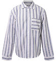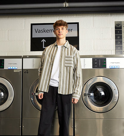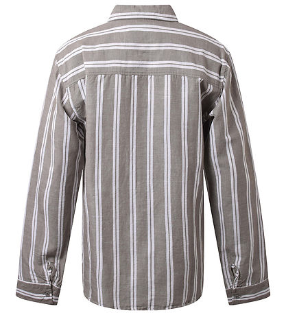 Wunderschönes Hound Hemd in Mattgrün mit weißen, vertikalen Streifen.
