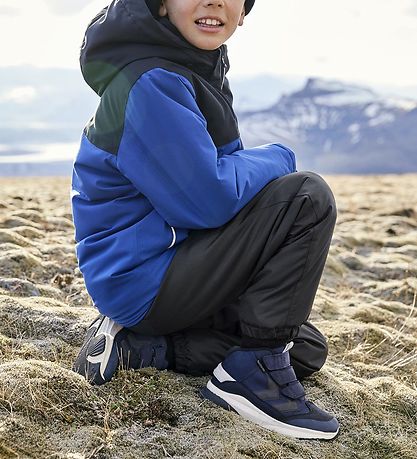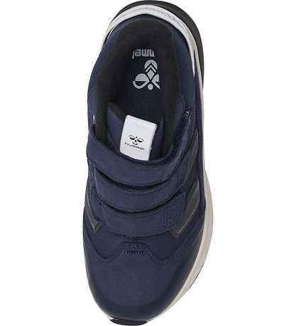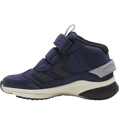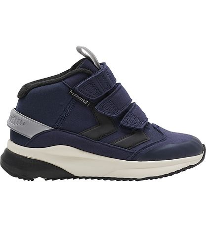 Schöne Hummel Stiefel aus dunkelblauem imitiertes Leder und Textil. Die Stiefel haben reflektierende Details an Ferse und Zunge und eine Gummibeschichtung an der Zehenpartie. Innen und außen befinden sich die charakteristischen Hummel-Winkel in Schwarz.