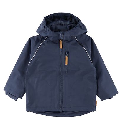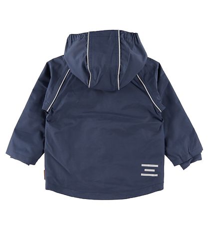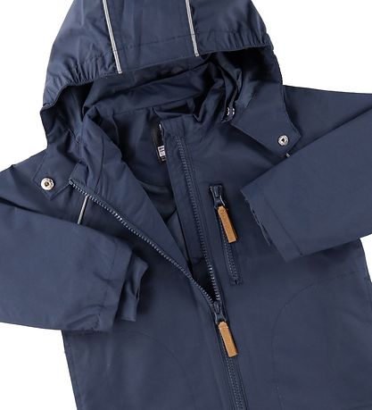 Schöne Sommerjacke von Hust and Claire in Dunkelblau mit reflektierenden Paspeln an den Schultern und an der Kapuze.