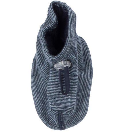 Süße Joha Krabbelschuhe in Marineblau mit perfekt feinen, schmalen Streifen in Beige.