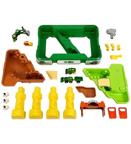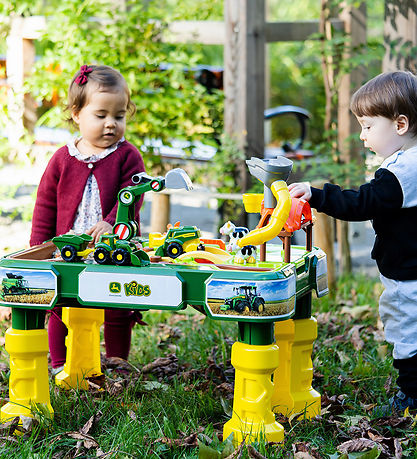 Spannender John Deere Spieltisch in Grün und Gelb, bestehend aus 23 Teile. Der Spieltisch enthält unter anderem drei Kühe, zwei Traktoren, einen Kran und eine Wassermühle. Der Spieltisch eignet sich für Wasser- und Sandspiele, bei denen nur die Fantasie Grenzen setzt.