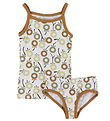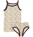 Gepflegte Katvig Unterwäsche mit einem Unterhemd und einer Boxershorts in einem warmen Gelbton, verziert mit einem Stern und Monddruck. Die Unterwäsche vereint modische Elemente von Katvig mit Komfort und Funktionalität.