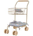 Der Konges Sløjd hat einen Stahlrahmen und das Kind kann die Puppe mit einem Gurt zwischen den Beinen in einem weich wattiert Sitz positionieren.