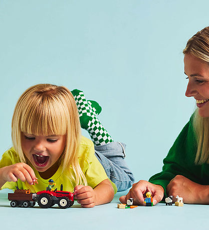 Schön LEGO® City Set mit insgesamt 116 Klötze, die zu einem rot Traktor mit Anhänger und Schafen zusammengebaut werden können.
