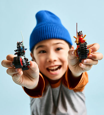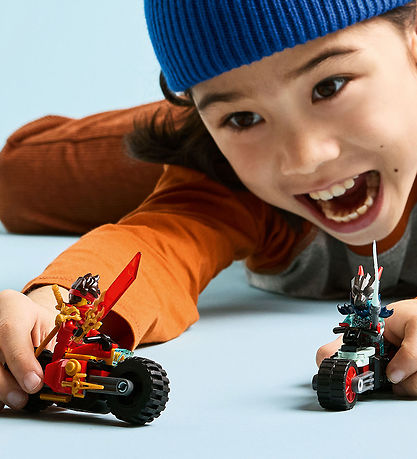 Lustiges LEGO® Ninjago Set mit insgesamt 79 Klötze, die für Kais Motorradrennen aus der TV-Serie NINJAGO: Aufstieg der Drachen zusammengebaut werden können.