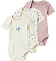 Bezauberndes Name It Bodyset bestehend aus einem Body und einer Shorts. Die Sets sind in einem hellen Beige mit Blumenprint und ansprechender Textur gehalten.