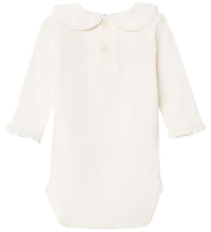 Der Name It Body hat lange Ärmel und einen Rund mit einem breiten, schön Spitzenkragen. Der Body lässt sich mit praktischen Druckknöpfe zwischen den Beinen oder mit Knöpfe am Hals öffnen. Der Body ist aus einer weichen und dehnbar Baumwollqualität gefertigt.