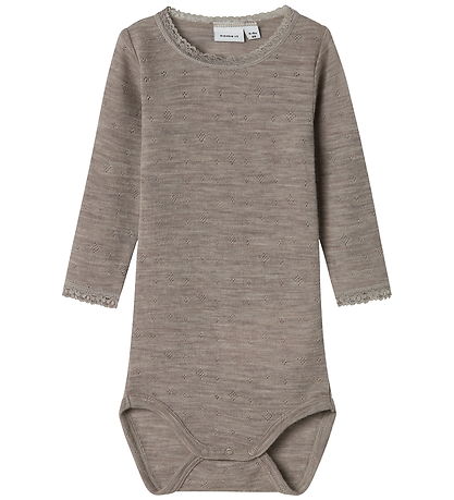 Schön Name It Body mit langen Ärmeln in einem dezenten Beigeton. Der Body hat ein dezentes Lochmuster und Spitze am Hals und an den Ärmeln, was ihm einen schlichten Ausdruck verleiht. Der Body ist aus hergestellt aus.