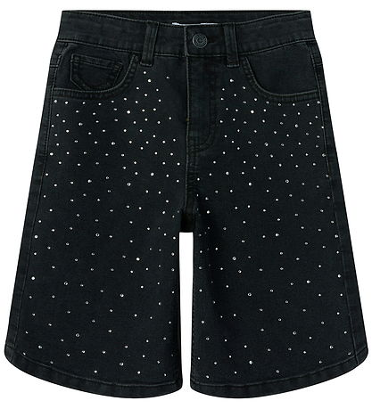 Stilvolle Name It Shorts aus klassischem schwarz denim mit kleinen Strassstein auf der Vorderseite für einen modernen Look. Die Name It Shorts haben einen bequemen elastischen Bund und zwei praktische Taschen auf der Vorderseite, die sowohl Funktionalität als auch Stil verleihen. Sie werden vorne mit einem Haken und Reißverschluss geöffnet.