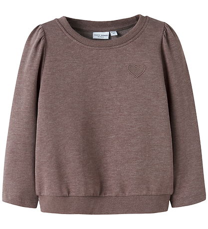 Elegantes Name It Sweatshirt in zartem lila mit einem einzelnen gestricktem Herzen auf der Brust. Das Name It Sweatshirt hat lange Ärmel, gerüschte Details an den Schultern und einen klassischen Rund, der für einen stylischen Look sorgt. Auf der Innenseite befindet sich weiche, gebürstete Baumwolle.