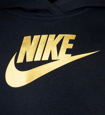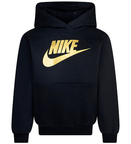 Smart Nike Kapuzenpullover in klassischem Schwarz mit auffälligem großem Logo-Print in Gold auf der Vorderseite. Der Kapuzenpullover hat einen schlichten und zeitlosen Stil, perfekt für jeden aktiven Tag.
