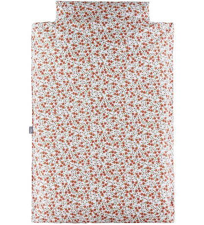 Schöne Bettwäsche von Nørgaard Madsens in Weiß mit einem Allover-Blumendruck in Rot und Grün.