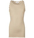 Süßes Rosemunde Top in beiger Rippqualität mit feinen Spitzenkanten.