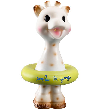 Süßes Badespielzeug Sophie la Girafe in Giraffenform mit farbenfroh Schwimmring.