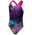 Der Badeanzug Speedo hat breite Schulterträger, die sich auf der Rückseite treffen, wo der Badeanzug auch ein großes Loch hat, das viel Bewegungsfreiheit bietet. Der Badeanzug hat gute elastische Kanten um alle Öffnungen, so dass er gut sitzt und dort bleibt, wo er soll.