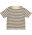 The New T-Shirt hat kurze Ärmel und dezente Nähte in der Ärmel- und Taillenöffnung, die für einen schmalen Rand sorgen. Das T-Shirt hat einen Rund mit schmaler gerippter Rand.