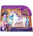 Tolle Unicorn Academy Spielfiguren, die Layla Fletcher und ihr Einhorn Glacier darstellen - bekannt aus der Netflix-Serie „Unicorn Academy“.