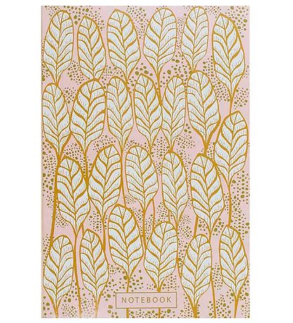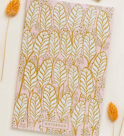 Wunderschönes Vissevasse Notizbuch in Puder mit einem Allover-print aus Blätter und Punkten in einem schön bräunlich-gelben Farbton.