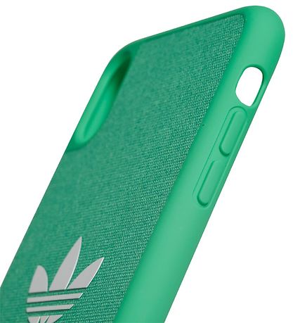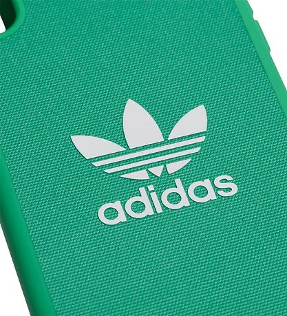 Wonderful adidas Originals phone case in green textile with a white trefoil logo in the middle, with "adidas" written underneath. The phone case is coming with a silicone edge, so both the mobile and the case are better protected against impact.