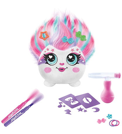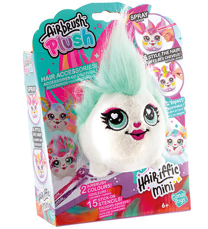 The Airbrush Plush soft toy is soft, sweet and cuddly, and you can color it yourself with the included 2 airbrush colours and 15 reusable templates.