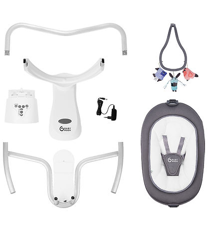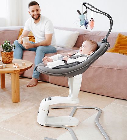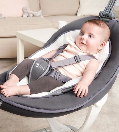 Smart Babymoov recliner in the Swoon Motion Electric 360° model in a gray and white color theme.