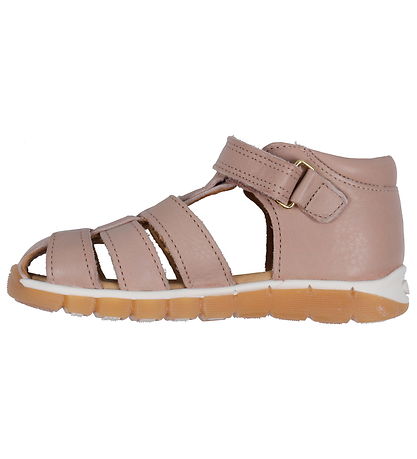 Beautiful Bisgaard sandals in powder pink leather. The Sandal has beautiful, braided straps over the foot. On the Velcro strap, "Bisgaard" is embossed into the leather.