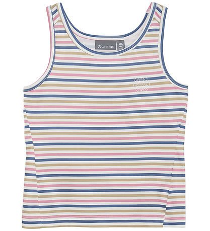 The Color Kids top has wide straps, and the throat and arm openings have narrow edges. The top is made of a stretchable material, which makes it good for sport and activity.