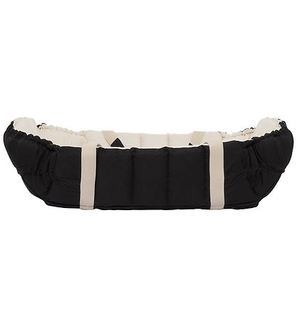 Lovely Copenhagen Colors baby lift in plain black on the outside and cream-colored on the inside with narrow, grey stripes.
