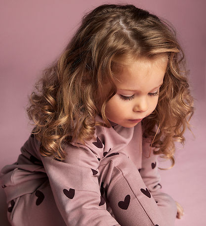 Charming Creamie leggings in a soft, pink shade with a sweet heart print and ribbed structure. The Creamie leggings have an elasticated edge that ensures a good fit all day long.