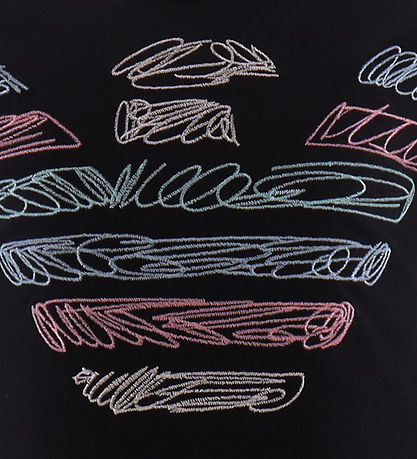 Nice Emporio Armani t-shirt in navy, and on the front there is a large logo embroidered in pastel shades.