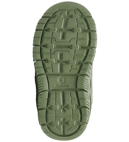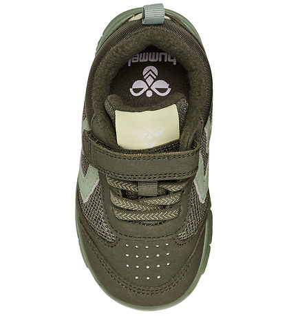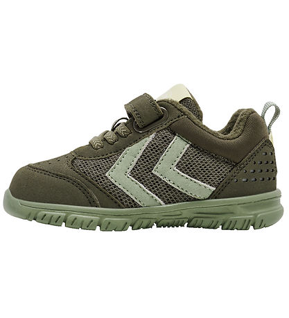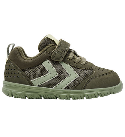 Cool Hummel shoe in olive green, imitation leather with textile details with the well-known shevrons both on the inside and outside.