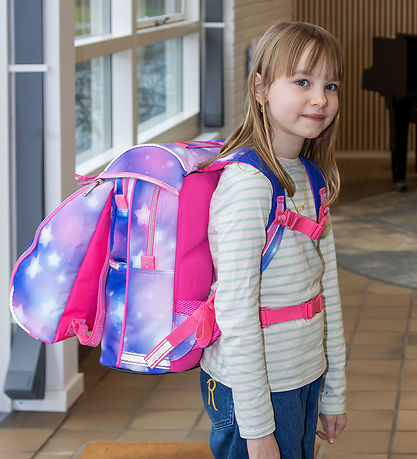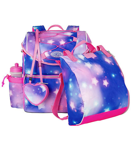 Nice Jeva school backpack in shades of purple, blue and pink and with a beautiful star print.
